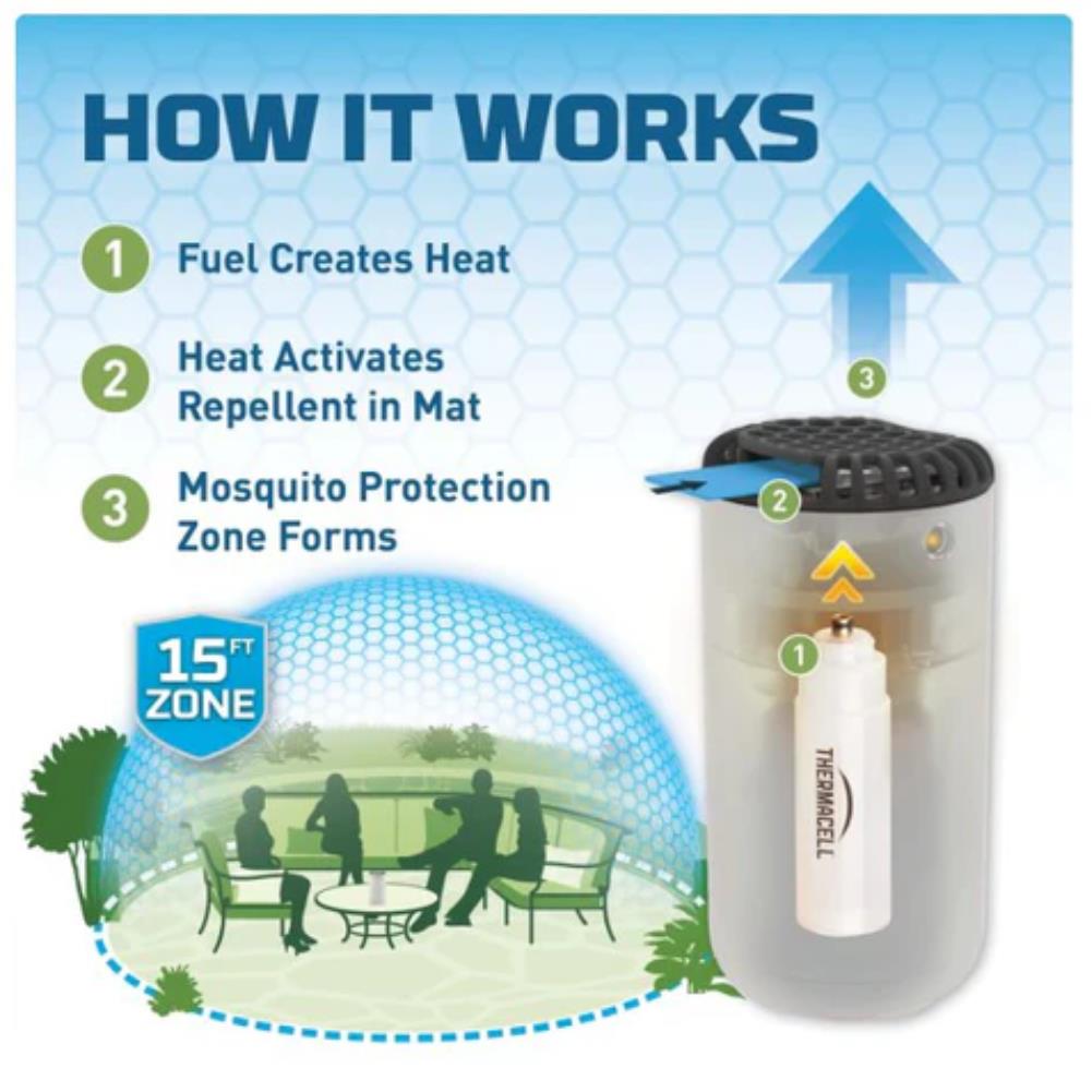 Thermacell provides zone mosquito protection that keeps mosquitoes up to 15 ft away, stopping them before they can bother or bite you. Thermacell’s zone repellent technology eliminates the need for messy lotions or sprays, so you and your family are free to enjoy the outdoors, without worrying about mosquitoes or the harm they may cause. Thermacell repellent devices are either powered by a small fuel cartridge or a rechargeable battery, providing effective and efficient scent-free mosquito protection. If you love the outdoors like us, but don’t love mosquitoes, get a Thermacell repeller.