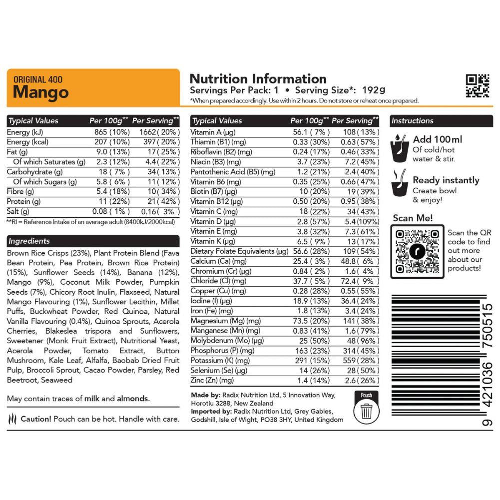Start your day right with our Radix Nutrition Original Breakfast v9.0 - 400Kcal! Its packed with the perfect balance of macro and micro nutrition to keep you focused and performing at your best. Plus, its a great source of protein, fibre and over 30 essential vitamins and minerals.